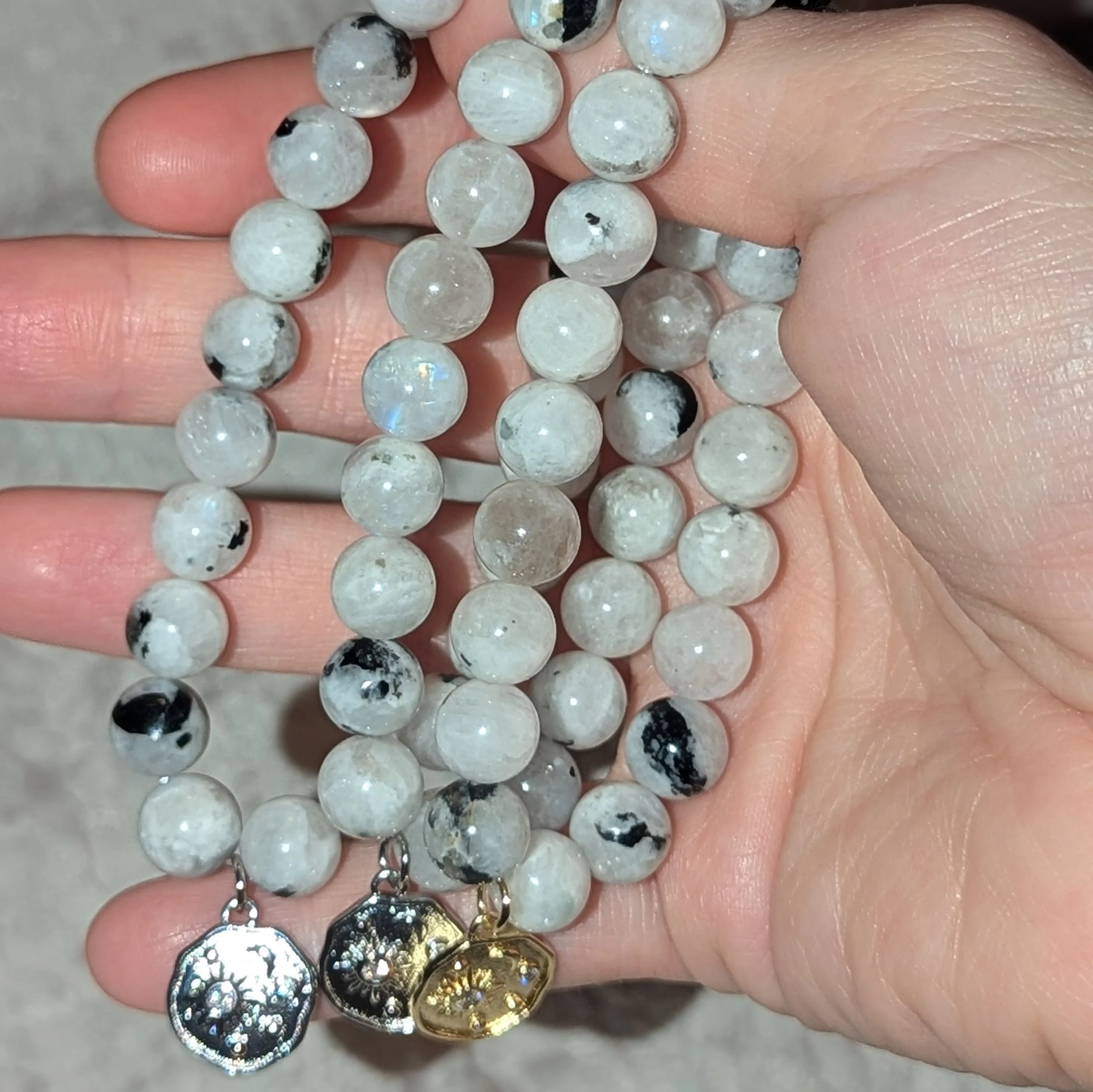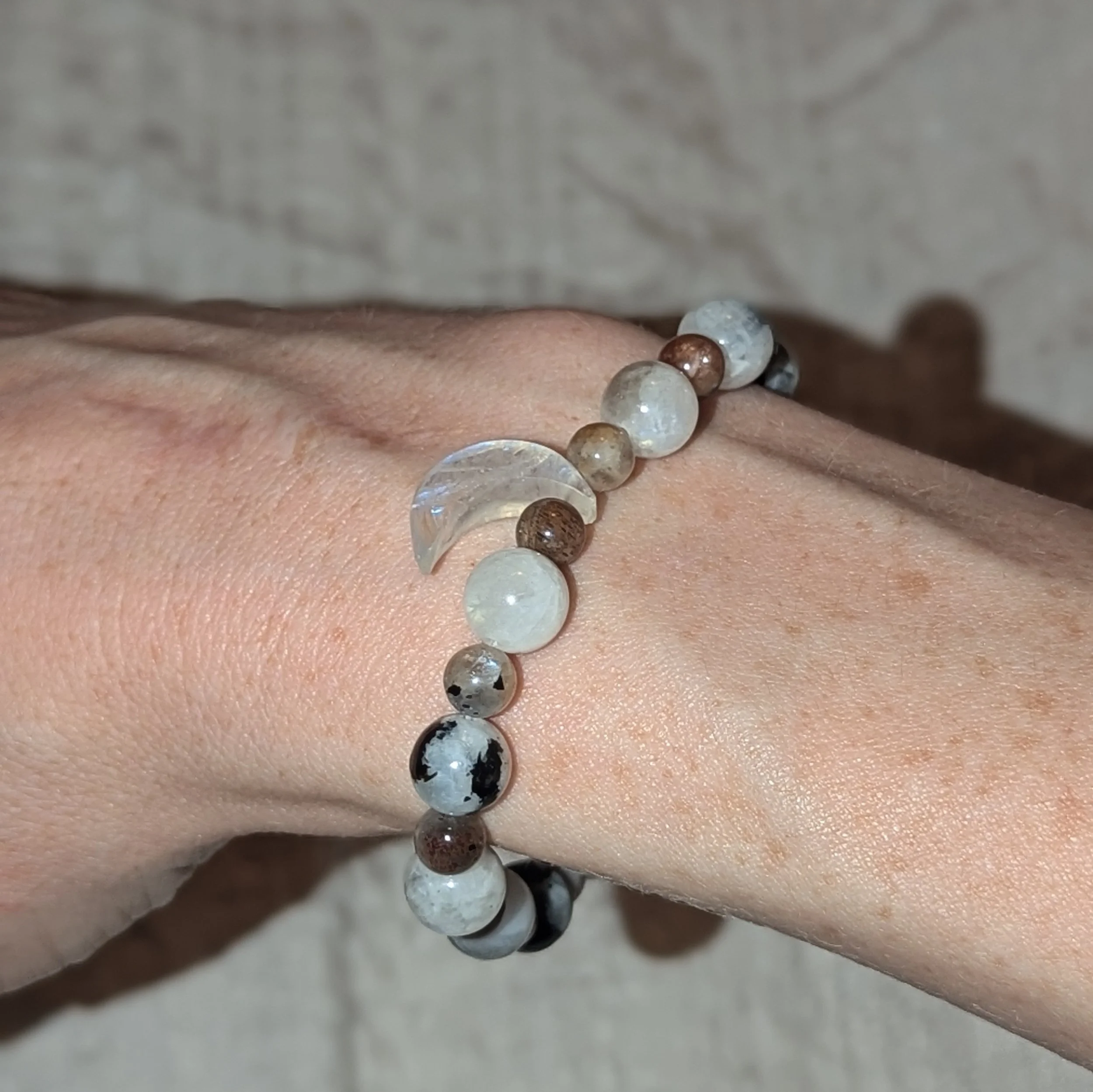 Categories: All Bracelets All | Bracelets | Crescent Moon Bracelet $20.00 Sunstone Bracelet $20.00 Moonstone Bracelet $20.00 Sunstone Moonstone Bracelet $20.00 Celestial Charm Bracelet $20.00